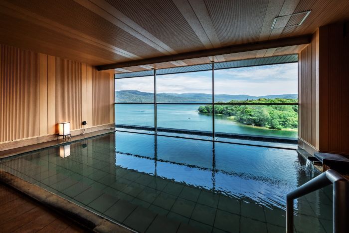 阿寒湖を見渡す絶景の天空ガーデンスパも利用可能。(湯浴み着完備!)